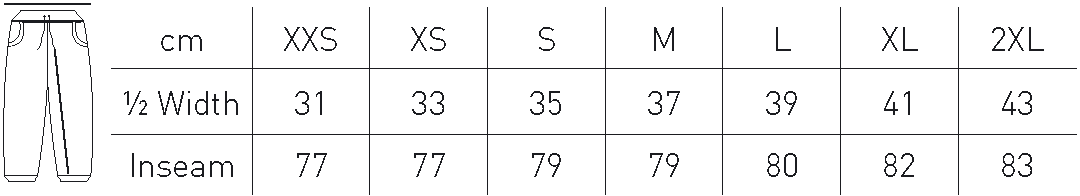 De tailleband is van 2x2 rib met elastaan met een brede elastiek aan de binnenkant van de rib. Het trekkoord wordt op zijn plaats gehouden in een tunnel midden op de rib.
